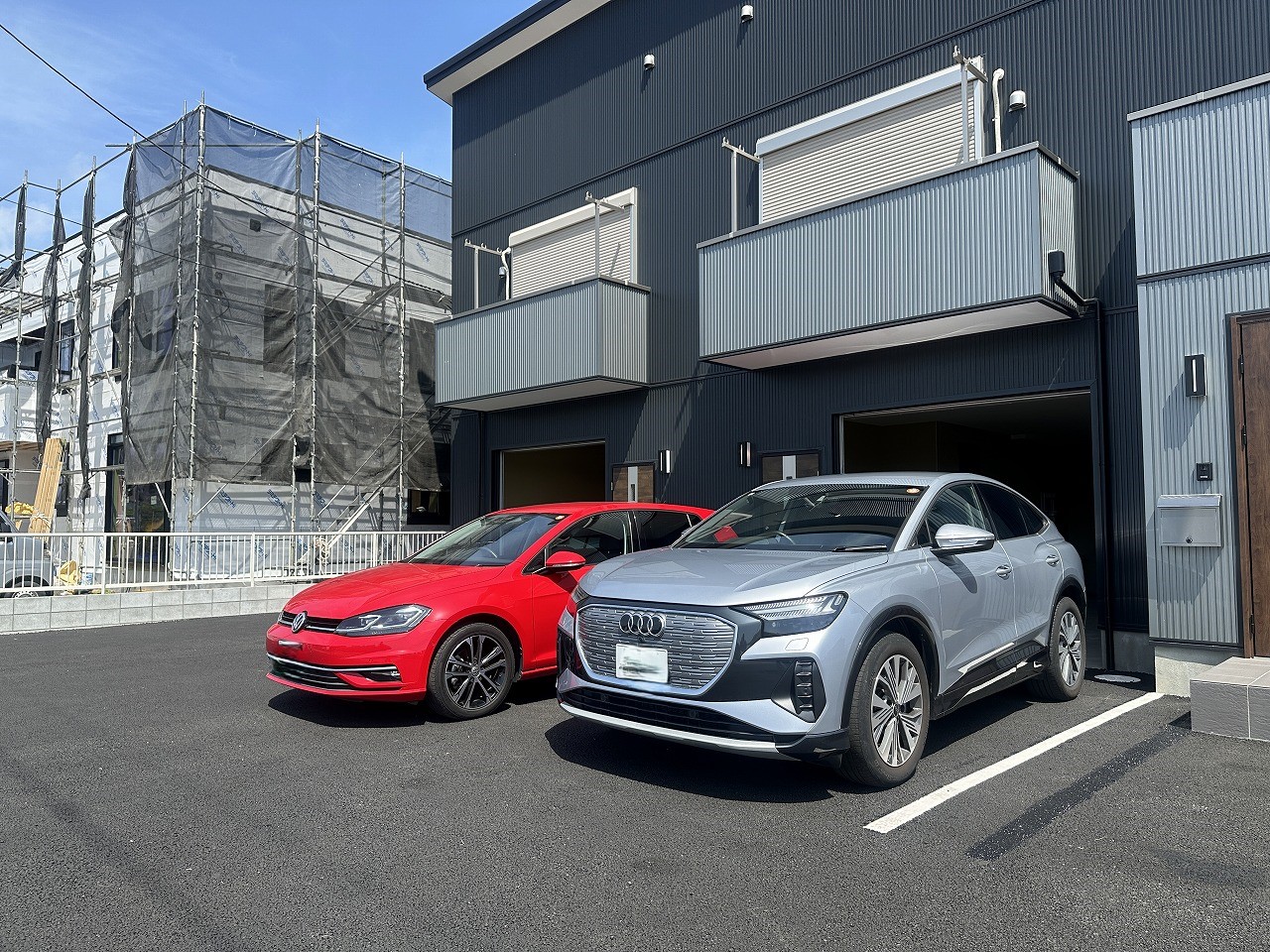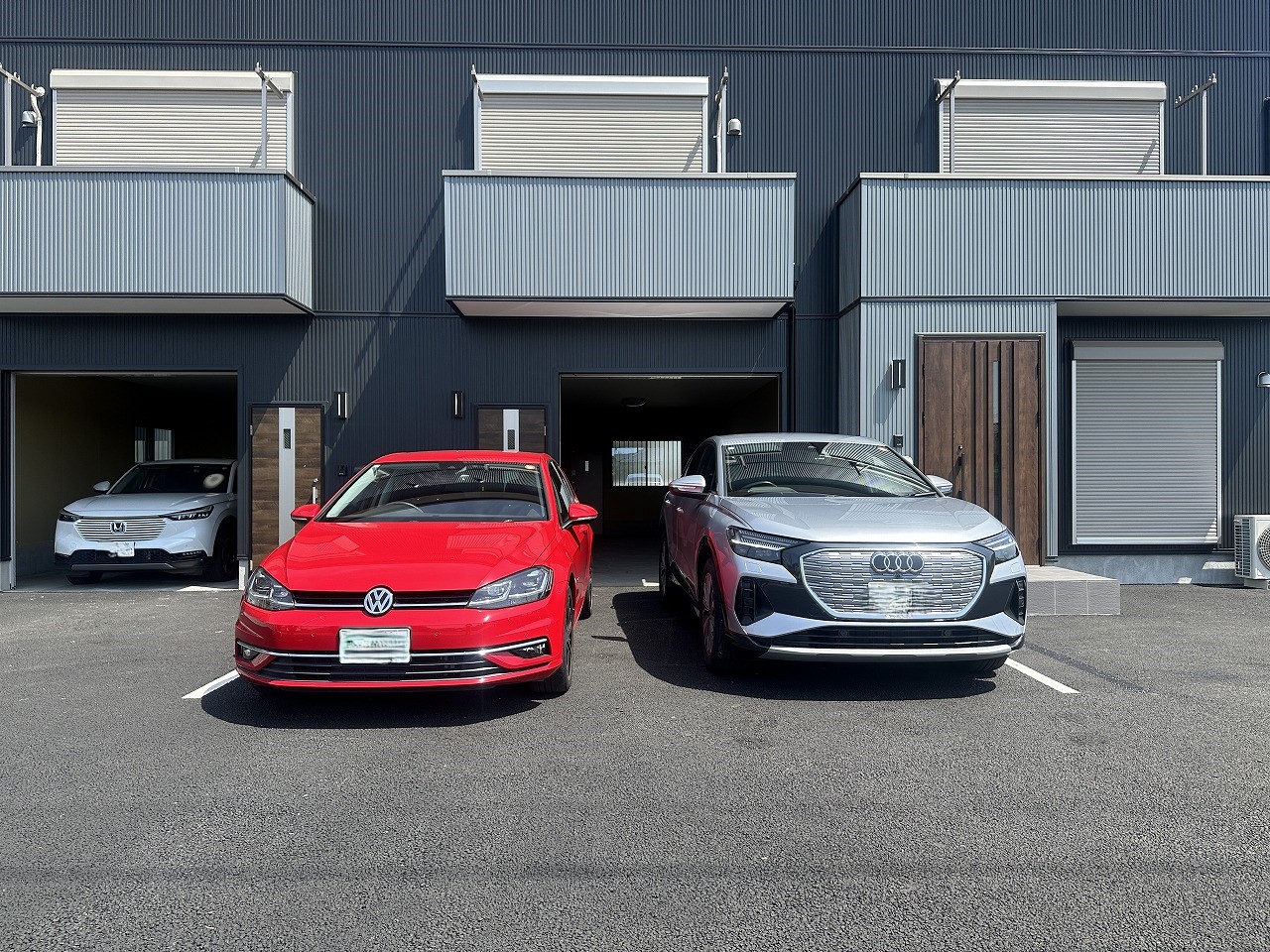 更に、ガレージ前にも駐車できるスペースがあるのですが、横に2台並べるとこんな↓感じです