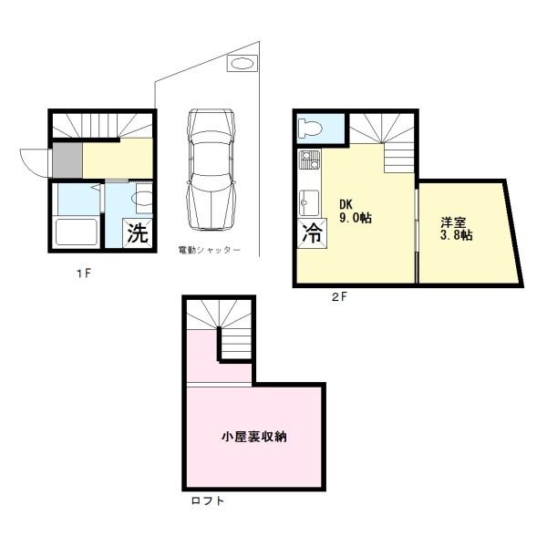 所沢ガレージハウス 狭山ケ丘の2DK賃貸アパート