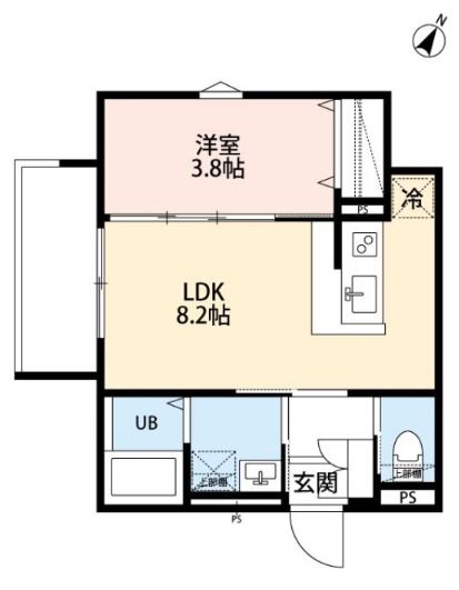 1LDK( LDK8.2畳/洋室3.8畳(*階) ) |